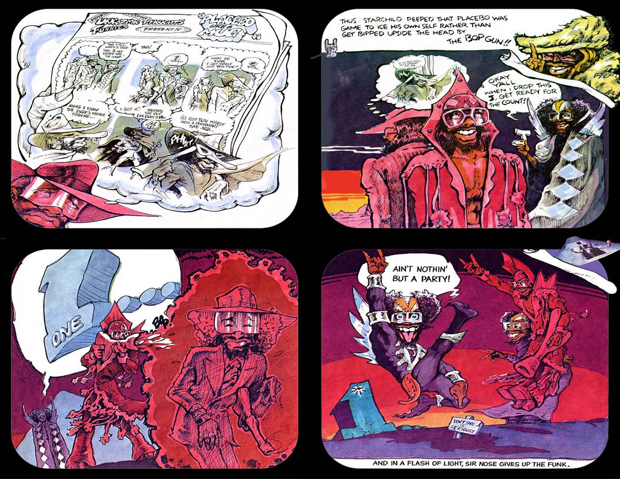 'Doctor Funkenstein VS Sir Nosedevoidoffunk' from Parliament's 'Funkentelechy vs. the Placebo Syndrome' (1977) sleeve.