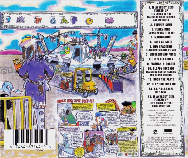 Back cover with comic strip for George Clinton & The P-Funk Allstars' 'T.A.P.O.A.F.O.M.' album.