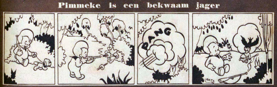 When the team broke up in the second half of 1945, Goossens continued 'Tijl en Lamme', while Luyckx drew 'Pimmeke' on his own until 1946, using the pen name Julux. In some 1946 issues of Kleine Zondagsvriend, the signature of Julux also appeared in the panels of Bob De Moor's crime noir serial 'Inspecteur Marks', revealing that Luyckx filled in on a couple of episodes. Jules Luyckx allegedly worked for Kleine Zondagsvriend until 1948, although his signature seems absent from post-1946 issues. Considering the art style, though, he could be the artist behind the pen name "Lode Teekenbol" (or "Lode Tekenbol"), who, between issue #42 of 1946 and issue #52 of 1947, created three imaginative serials with the two boys 'Snippertje Wit en Snippertje Zwart', whose offbeat adventures brought them to Wonderland, to Hell and finally to the American Far West.