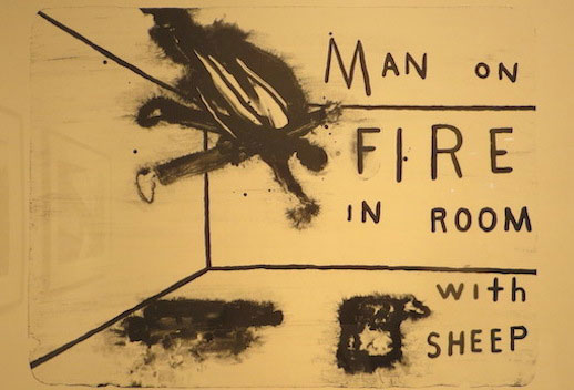 'Man On Fire In Room With Sheep'.