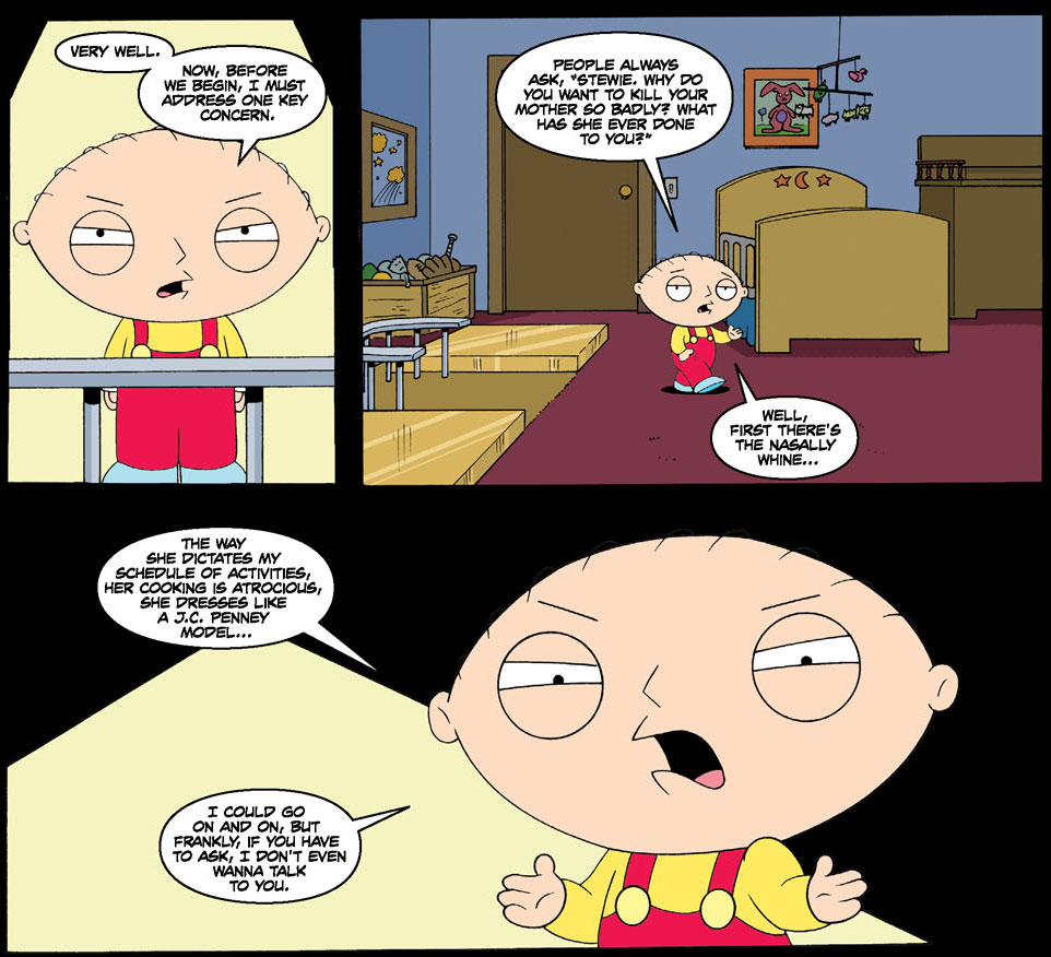 From: '100 Ways to Kill Lois Hosted by Stewie Griffin' (artwork by Ben Phillips and Rich Koslowski).
