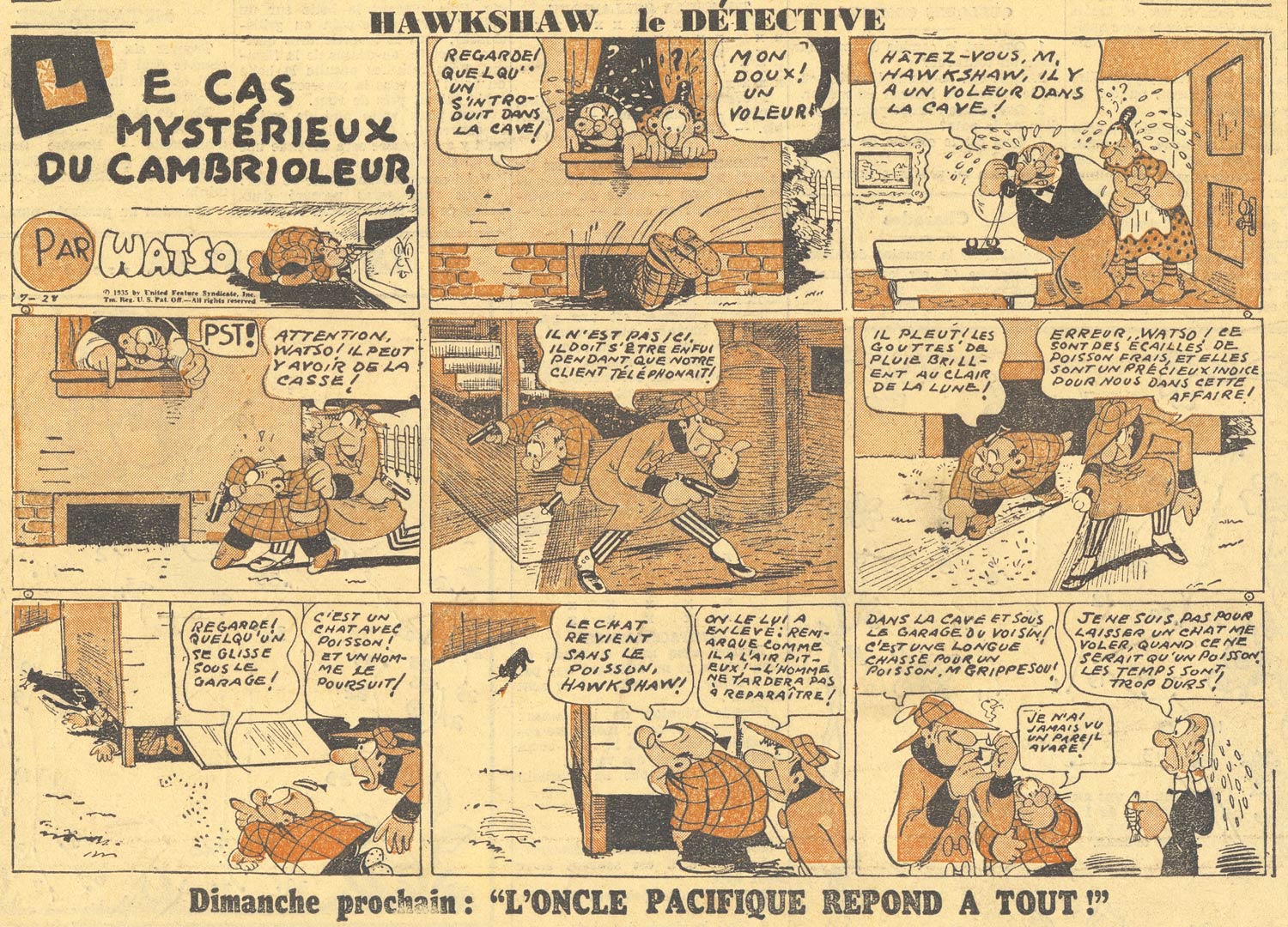 Mager's 'Hawkshaw' was also syndicated abroad, like to the Québec newspaper Le Petit Journal (1933-1937).