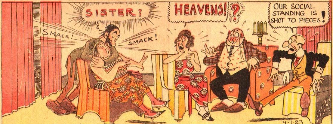 A little more enduring was Mager's daily 'The Trewtulyfe Family' (28 August 1923-1 January 1924), in itself basically a rip-off of George McManus' 'Bringing Up Father'. It also revolved around a poor family trying to be accepted in high society, while their father continuously blew their plans by getting along with people of lower class. Its Sunday page version, 'Main Street', ran between 15 October 1922 until 7 October 1923. 'The Trewtulyfe Family' was eventually replaced by Mager's previously mentioned 'Radio the Monk'. Around November 1925, another short-lived Mager strip, 'Fifty-Fifty Family', was in circulation, presumably through self-syndication or through the McNaught Syndicate.