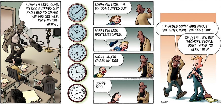 Jef Mallett is an American cartoonist based in Huntington Woods, Michigan, and the author of the syndicated comic strip 'Frazz'. The strip is centered about school janitor Edwin Frazier, and according to the author, largely deals with "discovery". The author's passion for bicycling and hanggliding is also incorporated in the strip. Mallett originally had an EMT training before turning to graphic arts.