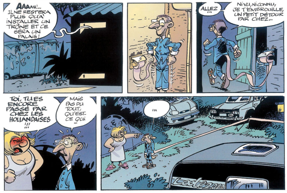 Turning to a new, more personal caricatural style, Maltaite illustrated the promotional one-shot 'Ténérife' (1994) by commission of JM Consulting for the visitors of the Las Águilas Jungle Park on the island Tenerife. In the following year, he was back in Spirou's pages with 'Route 0' (1995-1997), short stories written by Jean-Louis Janssens about awkward and magical events along one of the US' strangest highways. Equally awkward were the two gags he drew for Thiriet's collective feature about the anthropomorphic cats 'Dédé & Déde' (1997).