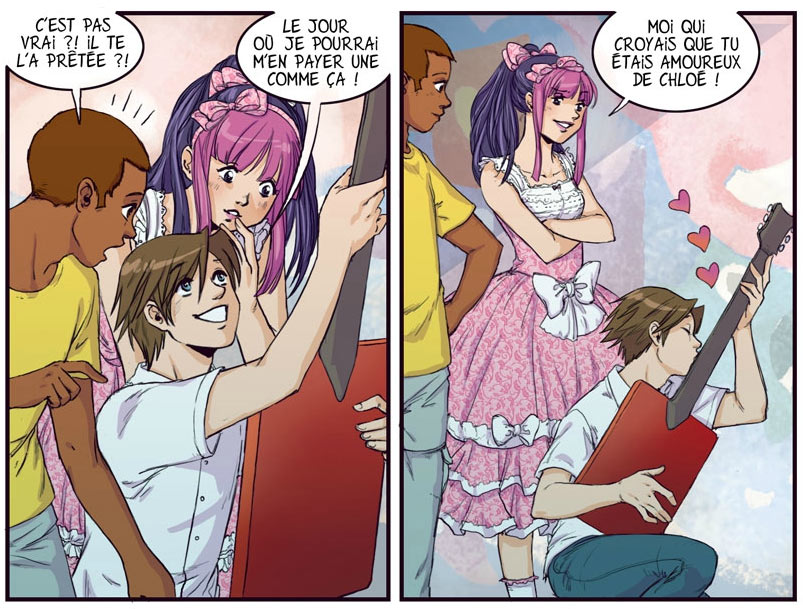 Manboou, whose real name is Audrey Fasquel, was born in 1981 in Calais. She is a graduate from the Academy of Fine Arts in Tournai. In 1999, she created the fanzine Freestyle, which she filled completely with her own manga-inspired work. After winning a prize with her fanzine, she got in touch with the publishing house Delcourt. In 2005, she made her album debut with 'Fred et Sophie', a comic with two characters she had already created for her fanzine. A second album followed in 2006. Manboou also made illustrations for educational material and developed the pirate comic 'Les Portes du Ciel' with her Academy companion Rémi (Delcourt, 2007).