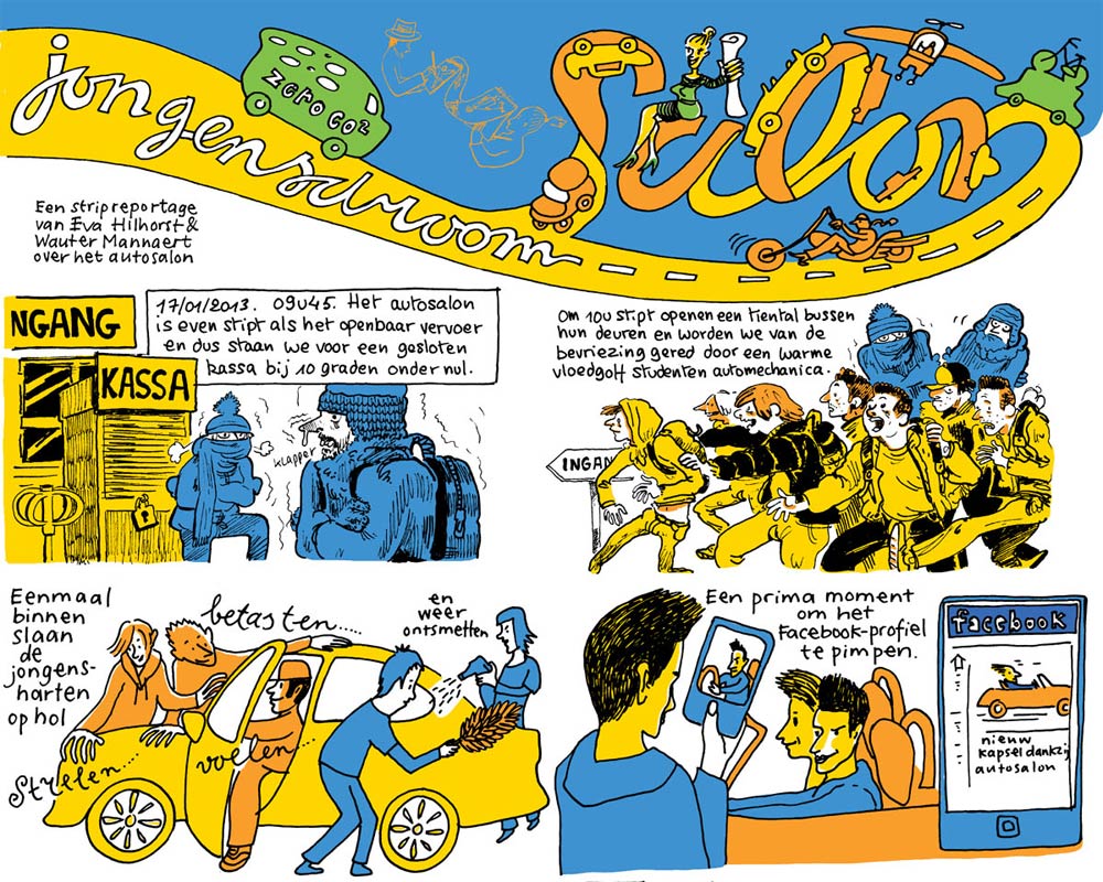 2013 graphic report by Wauter Mannaert and Eva Hilhorst about the European Motor Show Brussels ("Autosalon").