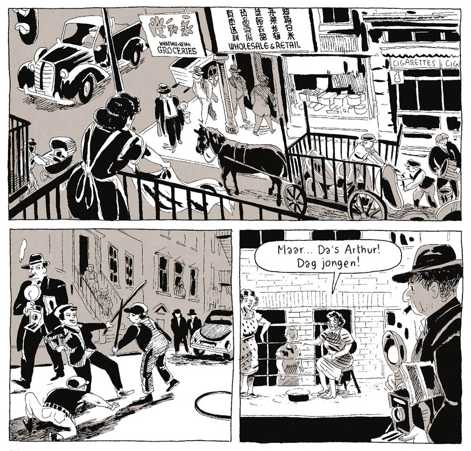 Mannaert spent an equal amount of time on his next graphic novel, 'El Mesías' (Blloan, 2015). It features a complex story of nearly 300 pages long about a small Andalusian village. The community builds its own "isle of social justice, surrounded by the imperium of capitalism". The village tries to combat the system. The plot was written by Mannaert's former studio mate Mark Bellido - originally from the Andalusian region. He was inspired by the utopian Seville municipality Marinaleda, where the town folk live and work in a self-managed agricultural cooperative. In 2017, the book was translated into English as part of the Europe Comics catalog. With another member of the "Sharpened Pencils" studio, Max De Radiguès, Mannaert made a comic book in grey tones about New York street photographer Usher Fellig (1899-1968), AKA "Weegee". 'Weegee - Serial Photographer' (Blloan, 2016) was also published in French by Sarbacane and in English by Conundrum Press.