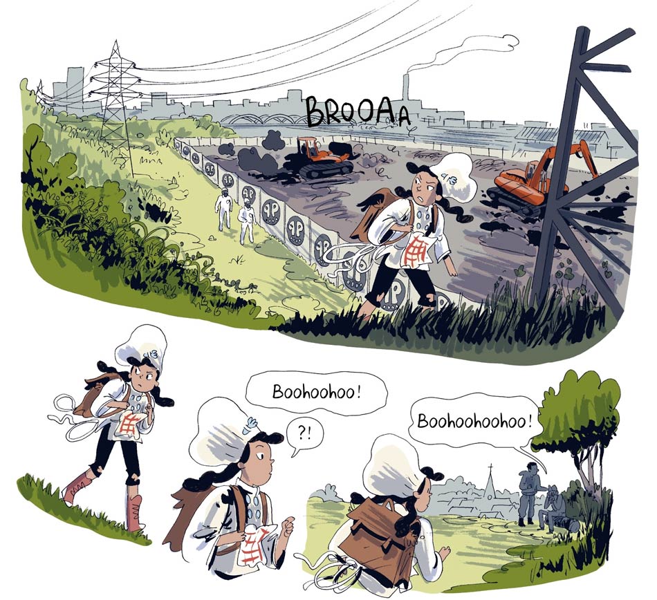 'Yasmina & De Aardappeleters' (Dargaud, 2019) was Mannaert's first children's comic book, about eleven-year old Yasmina, who can do magic in the kitchen with solely biological products. When a new factory potato is slowly driving consumers mad, the brave foodie has to save the city. Ostensibly an adventure story with absurd elements in the Flemish humor comic tradition, 'Yasmina & De Aardappeleters' also gives sharp criticism of the recklessness of the food industry, herd behavior and the misuse of science. Following the success of the one-shot graphic novel in both Dutch and French language, Dargaud continued 'Yasmina' as a series, with the first two installments appearing in 2020 and 2021. In 2021-2022, Mannaert's 'Yasmina' also appeared in the comic magazine Maxix with monthly educational pages about food and environmental subjects.
