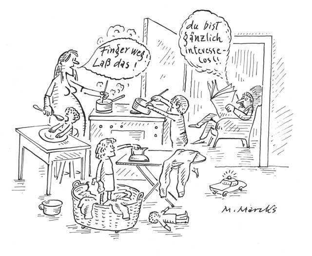 Marie Marcks was a German cartoonist and caricaturist. Recurring themes in her work were the Cold War politics, nuclear tests, the differences between East and West, the elderly and especially the equality of women and the struggle against traditional gender relations. She was an expert on the latter two subjects; she raised five children practically on her own and she managed to establish a unique position for herself in a profession dominated by men.