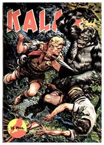 After several years of refusals, Marco Nadal was finally assigned by Marco publishers to illustrate 'El Mago del Lago' for their fairytale collection. For the next couple of years, Tomas Marco Nadal worked for several publishers, illustrating for several collections. In the early 1960s, he drew for several humorous magazines of Bruguera, like DDT, Tio Vio and Din Dan. He also illustrated some 'Capitan Trueno' stories. In 1963, Nadal started to work for the French market with 'SOS Titan' for Super Boy magazine, and his most famous creation, 'Kalar'. This series appeared from 1963 to 1983 (from 1969 also in his native Spain) and showed Nadal's interest in the history through the beautiful paintings of the animals of the jungle and the prehistoric monsters. Over 200 issues of the series have appeared, which were nearly all illustrated by Nadal. Marco's work has additionally appeared in the German horror comic book Gespenster Geschichten by Bastei Verlag.