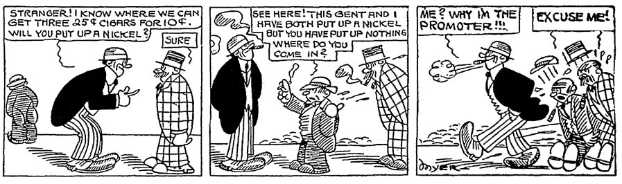 In 1908, Marcus became a cartoonist for a Denver paper, and during this period, he also toured the USA and Europe as a vaudeville act with Tom McNamara. He made a newspaper strip called 'Excuse Me' for the Jersey Journal in 1913-1914, later continued by Joe Doyle.