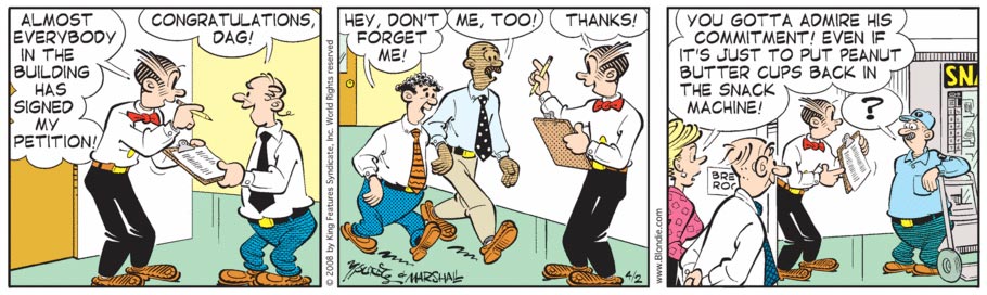 John Marshall sold his first cartoon to Parade magazine at the age of 14. After graduating from the Ringling School of Art in Sarasota, Florida, in 1976, he worked as an art director for an advertising agency in Binghamton. He eventually turned to freelance cartooning and among his clients were IBM and GE. In 1982, he created his syndicated comic strip 'Buford'. Between 1989 and 2003, he regularly published cartoons in the Binghamton Press and the San Bulletin. From 1994 to 2000, he worked with Mark Cullum on the comic strip 'Walnut Cove' for King Features Syndicate. Marshall became Denis Lebrun's assistant on 'Blondie' in December 2002, and he became the strip's lead artist in May 2005.