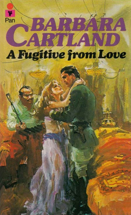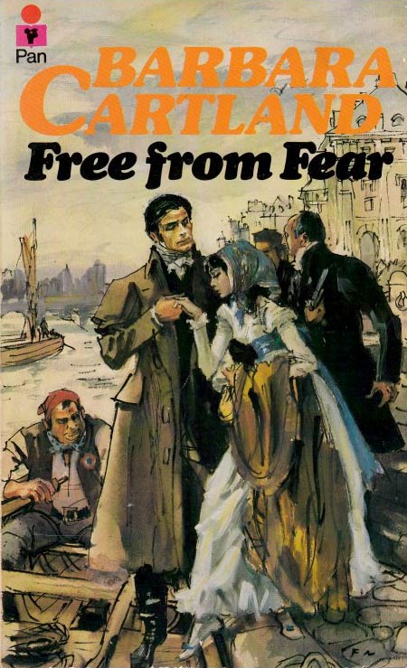 Cover illustrations for Barbara Cartland's novels 'A Fugitive From Love' and 'Free From Fear'.