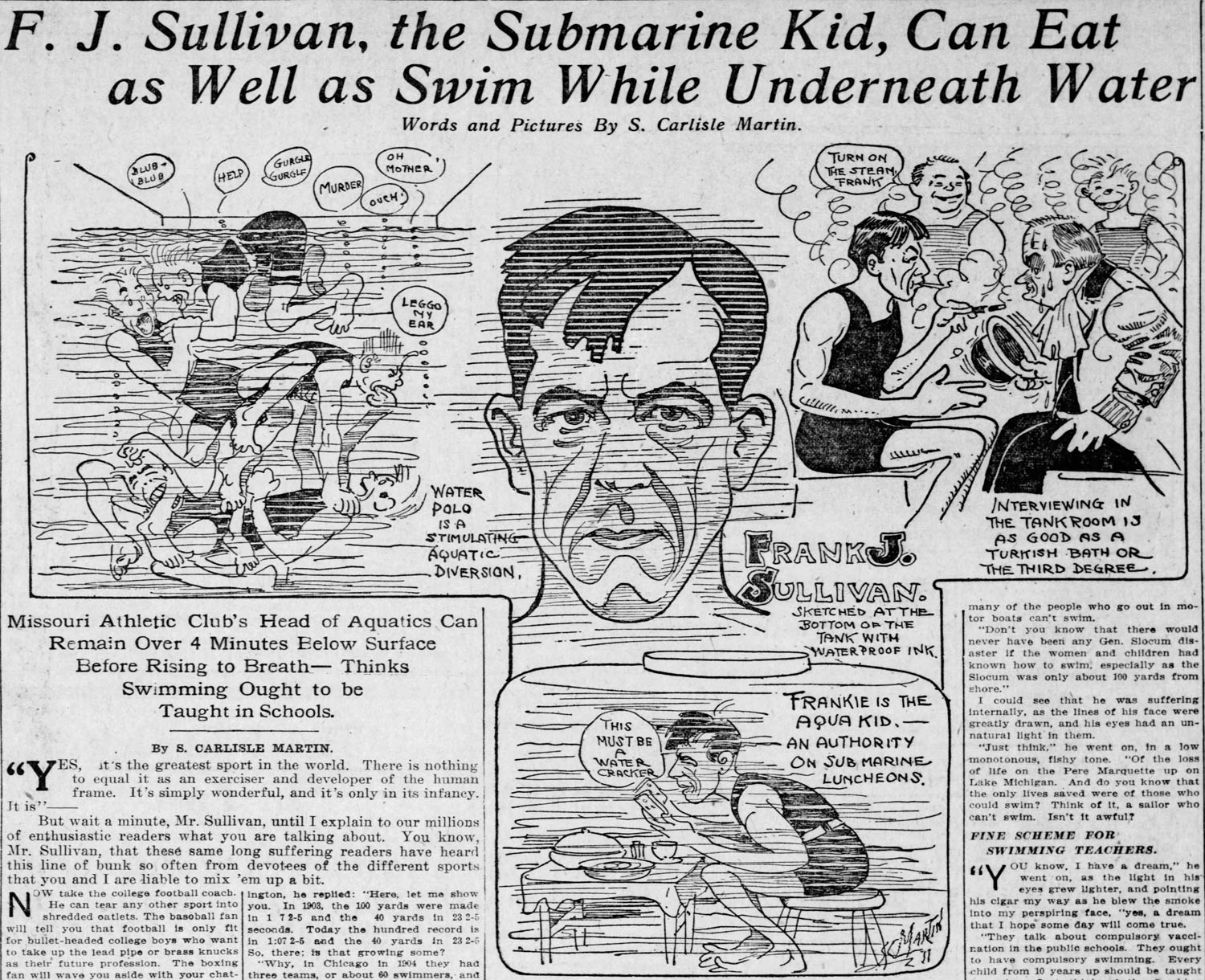 Illustrations for a sports article by S. Carlisle Martin, from the St. Louis Post-Dispatch of 29 January 1911.