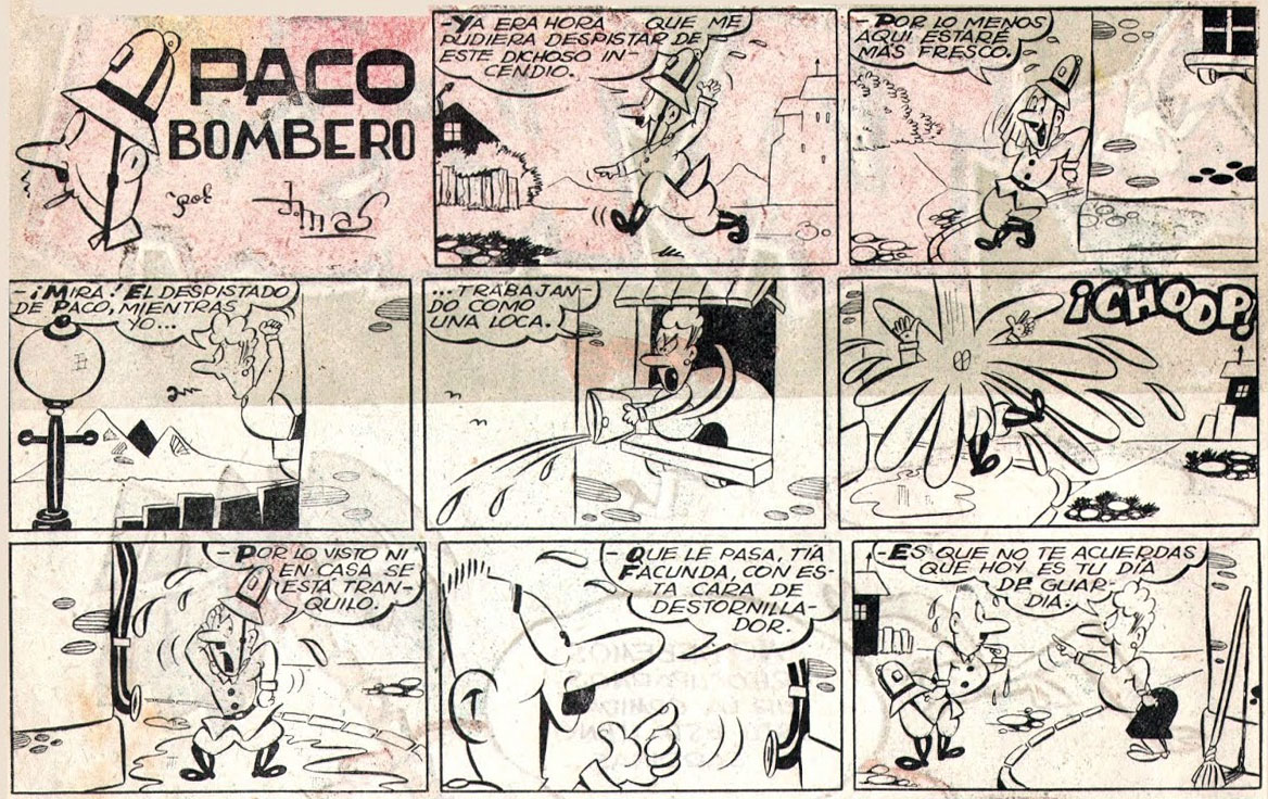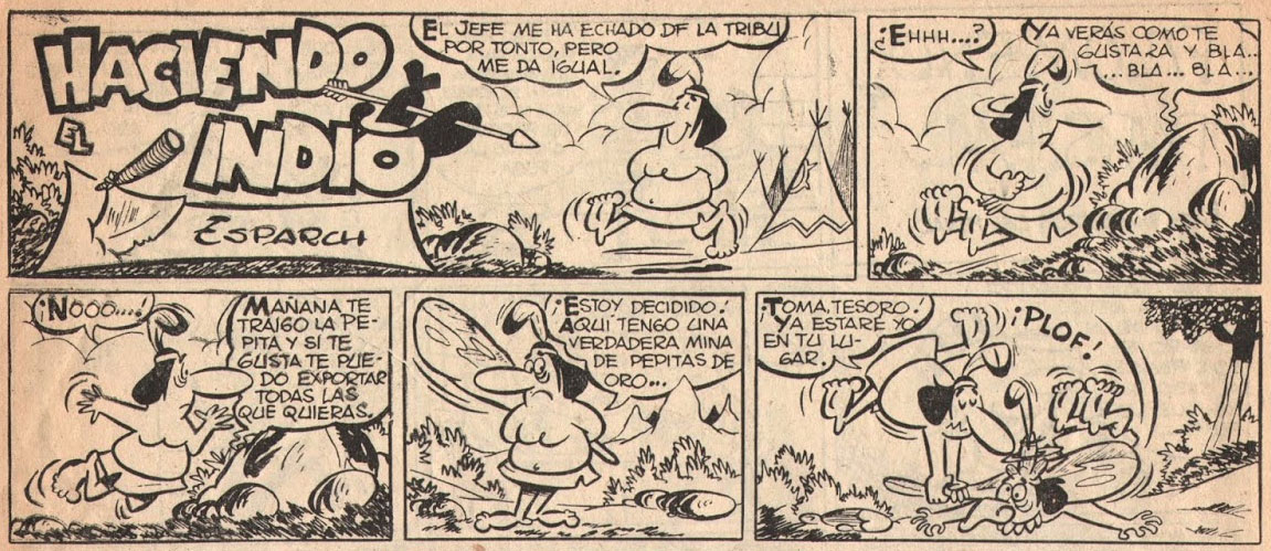 Esparch was also a regular in the comic magazines published by Editorial Marco. For Hipo, Monito y Fifi, he created the little Native American 'Comancheta', and the mouse 'Ratoncito Perez'. By 1958, Editorial Marco's top cartoonists Francisco Ibáñez and Raf had left for the publishing house Bruguera. Their creations for the Marco magazines were continued by other cartoonists, including Javier Pont, A. Pueyo, Kito, J. Cebrián and Esparch. In La Risa magazine, Esparch drew new episodes of Ibáñez's family comic 'La Familia Repolino' and the Native American 'Haciendo el Indio'. La Risa also ran Esparch's own creation, the police officer 'Paco Bombero'.