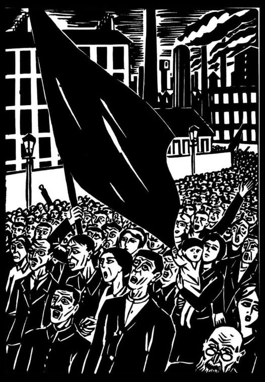 In Ghent, Frans Masereel observed the poor working conditions of the factory workers, and became involved in the socialist movement. Even though he came from a well-off family, Masereel developed progressive ideas about society and a rebellious streak. Important influences on his social viewpoints were the Flemish socialist leader Edward Anseele and the anarchist literature of the Russian writer Peter Kropotkin. Artistically, he found inspiration in the socially conscious cartoons in the French magazine L'Assiette au Beurre, singling out the cartoonists Théophile Steinlen, Jean Veber and Bernard Naudin. Developing a liberal approach to art, he tried several disciplines, including painting, sculpting, designing mosaics and theatre sets, and illustration. He however became best-known as an engraver, for which his main graphic influences were Albrecht Dürer, Grandjouan, Bernard Naudin and Félix Valloton.