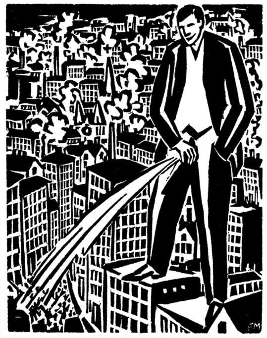 Although in the early 1920s Masereel was persona non grata in his home country, his international stature grew. From 1928 on, he was a frequent contributor to the French cultural magazine Le Monde. All over Europe, and even as far as the United States, Russia and Brazil, his work was published and exhibited. In New York, his picture stories were serialized in Vanity Fair magazine. In the 1920s, Masereel's work received tremendous critical appreciation in Germany, not surprisingly in the birthplace of Expressionism.