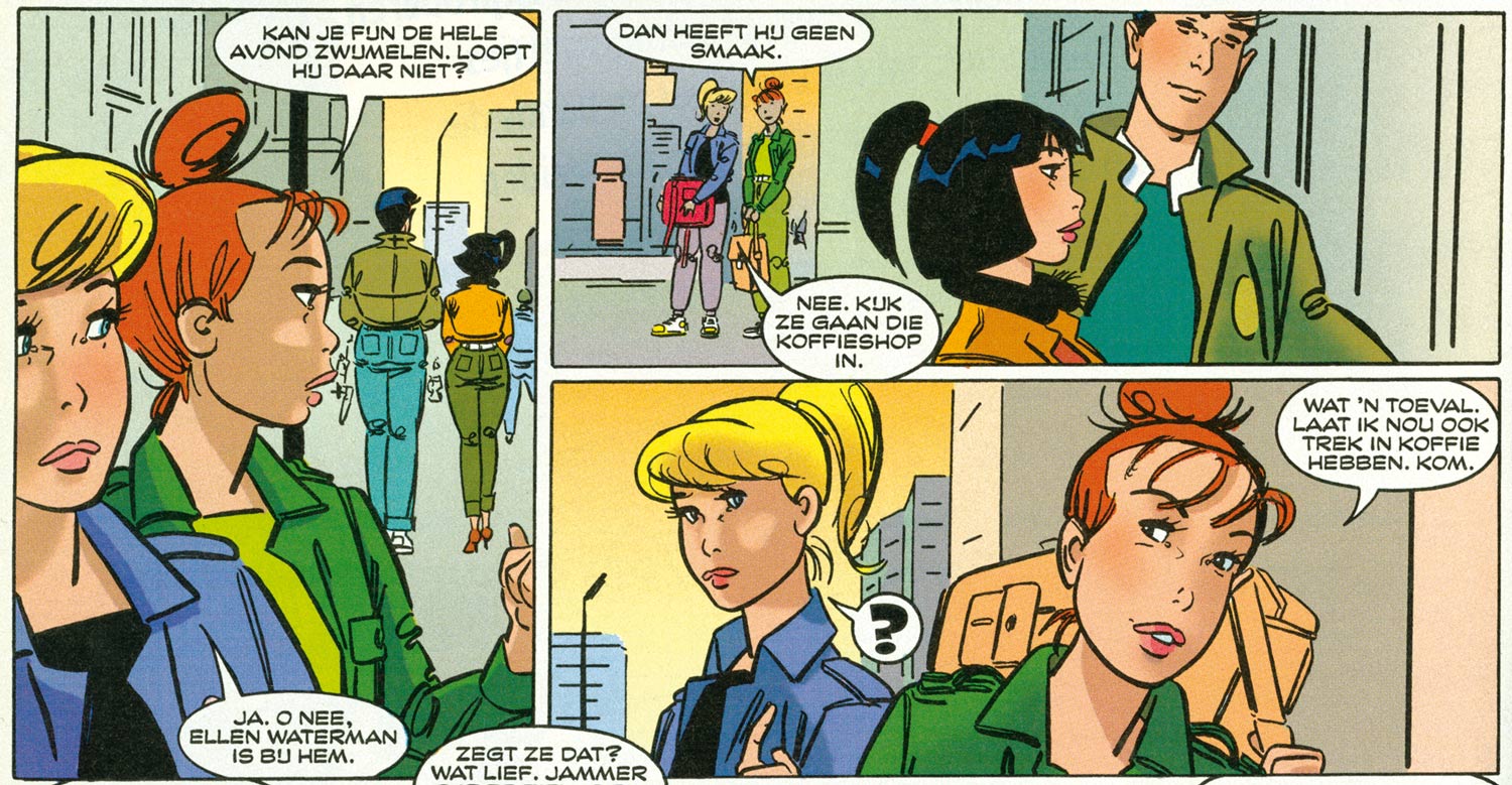 When comic magazines Pep and Sjors were merged to Eppo magazine in 1975, Matena was also present. His first contribution was the sole 44-page story about the privateer 'Kleine Pier' (1975). After that, he left the magazine for a short period of time and worked as an advertising artist and illustrator. In the meantime, he illustrated the 'Revuutje' section in the men's magazine Revu, and he made a nameless comic strip about raising children for the family weekly Wij (1976-1977). After five pages, Fred Julsing took over the artwork, while Matena continued to write the gags for another 17 episodes. By the time he returned to Eppo, Dick Matena focused on scriptwriting for other artists.