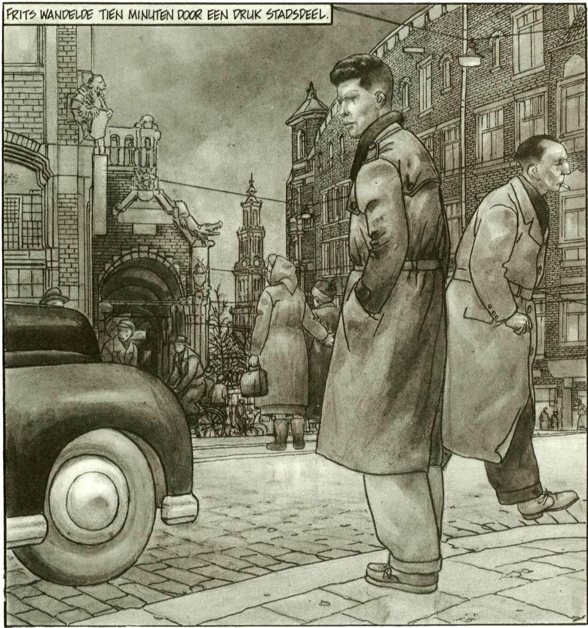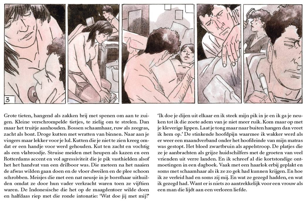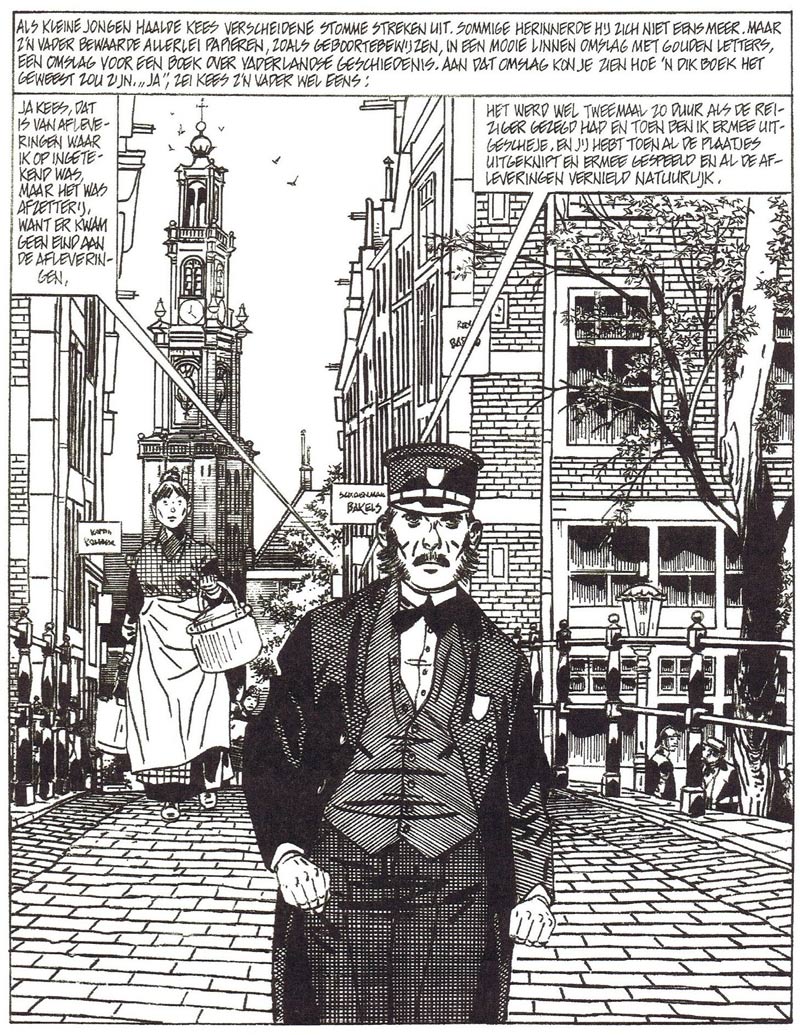 Matena's next project was an adaptation of Charles Dickens' 'A Christmas Carol' (De Bezige Bij, 2004). He gave Ebenezer Scrooge the looks of Dutch poet Gerrit Komrij (who couldn't appreciate the honor). In 2017, a reworked edition of the book was published by Personalia under the title 'Scrooge'. After Dickens, Matena embarked upon a full adaptation of the 1962 Jan Wolkers novel 'Kort Amerikaans', published in three volumes bij De Bezige Bij in 2006, 2007 and 2012. In between, he adapted two works by the Flemish writer Willem Elsschot: first the novel 'Kaas' (1933) and then the short story 'Het Dwaallicht' (1946), both published in 2008. In that same year, the tireless Matena also found time to rework some of his own stories into black-and-white graphic novels ('Parijs 25/44' and 'De Teloorgang van Oude Knudde').