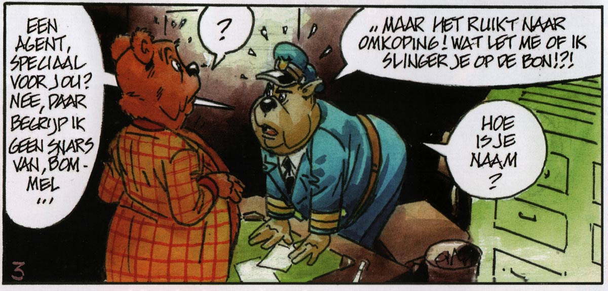 Matena anonymously provided pencil art for about 28 episodes of Marten Toonder's funny animal newspaper comic 'Panda', from the end of 'Panda en de Dienomaat' (late 1961) until halfway 'Panda en de Hobbeldonker-schurkerij' (1968). At the time, the plots of the stories were scripted by either Lo Hartog van Banda or Harry van den Eerenbeemt, and the inking duties by Frits Godhelp. Working more directly with Marten Toonder, Matena also penciled three stories of the 'Tom Poes en Heer Bommel' ('Tom Puss and Lord Bumble') newspaper comic: 'De Grauwe Razer' (1962-1963), 'De Wilde Wagen' (1963)' and the all-time classic 'De Bovenbazen' (1963). In 2012, in a far more personal style, he redrew one of the strips of 'De Bovenbazen' for an all-star reworking of the story at the occasion of the 100th anniversary of Marten Toonder's birthday.