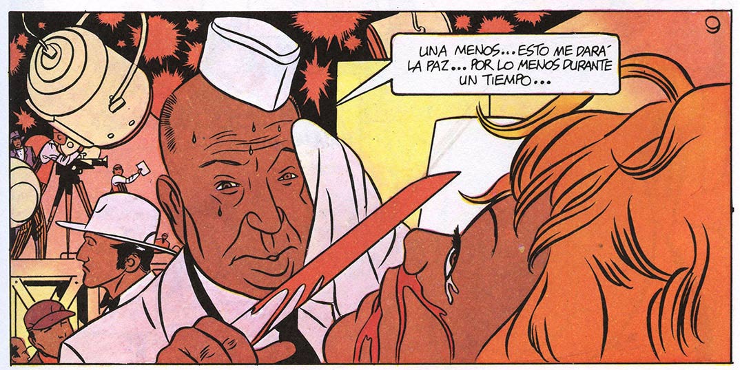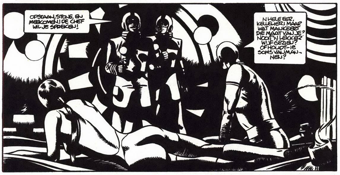 It didn't take long before Matena's graphical experiments for Gummi were picked up abroad. In 1979, he headed for New York City to personally deliver his sci-fi stories to Ted White, who ran them in his alternative magazine Heavy Metal in the following two years. In 1981, Dick Matena's international exposure expanded when he found representation by Josep Toutain's Barcelona-based Selecciones Ilustradas agency. Working directly for Toutain, Matena and his family moved to Spain, where they spent two years living in the coastal town of Sitges, not far from Barcelona. Through Selecciones Ilustradas, Matena's new stories were sold to Spanish indie magazines like El Víbora, 1984 and Comix Internacional, Heavy Metal in the USA and Métal Hurlant in France. Dutch book collections were published by Espee, Yendor and Arboris.
