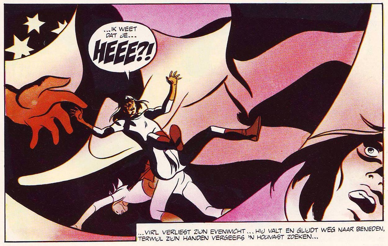 His steady workload in Disney comics gave Matena the financial security to explore more personal comic projects on the side. In the second half of the 1970s, his drawing style became more personal and realistic, characterized by slick, clean ink lines and black-and-white effects, while his new storytelling was more experimental. The first creation of the "new Matena" was the science fiction serial 'Virl', of which six 10-page stories were published in Mickey Maandblad in 1977, followed by four 15-pagers in 1981. In 2011 and 2012, 'Virl' was briefly revived for the second run of Eppo magazine. Matena's newfound realism was also used for the creation of the western feature 'Dandy' (1979-1980), of which three stories of 22 pages each were published in Eppo.