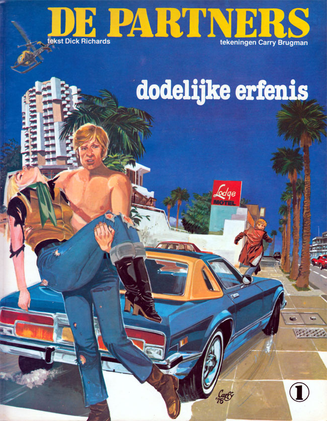 At Eppo, Matena co-created 'De Partners' with artist Carry Brugman, a series of action-filled adventure stories about an unlikely team of crime-fighters consisting of former jailbird Danny MacDonald, who inherits a multinational, and the countess Katia Diaghilev. To enhance the British-American atmosphere of the series, Matena wrote the comic under the pen name Dick Richards. Between 1976 and 1984, Matena and Brugman collaborated on eight albums of 'De Partners', after which Jacques Post took over the scriptwriting duties for eight more episodes. Between 2009 and 2014, Matena and Brugman made three new stories of 'De Partners' for the relaunched Eppo magazine, edited by Rob van Bavel.