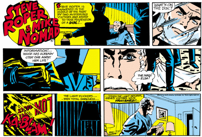 Matera also worked on newspaper comics of his own, such as 'Mr. Holiday', created with Chad Kelly for the George Matthew Adams Service syndicate in 1950-51. He drew the 'Nero Wolfe' detective strip for a while, made a movie tie-in comic strip with 'Indiana Jones' (1981) and the martial arts strip 'Legend of Bruce Lee' with Sharman DiVono and Dick Kulpa in 1982.