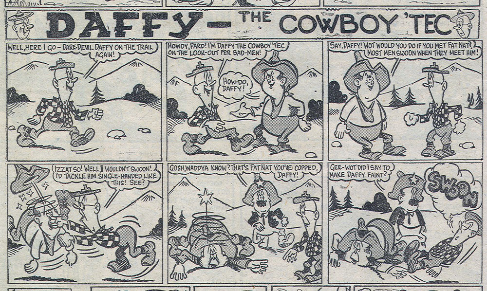 'Daffy the Cowboy Tec', drawn by Leonard Matthews for Knockout (6 December 1947).