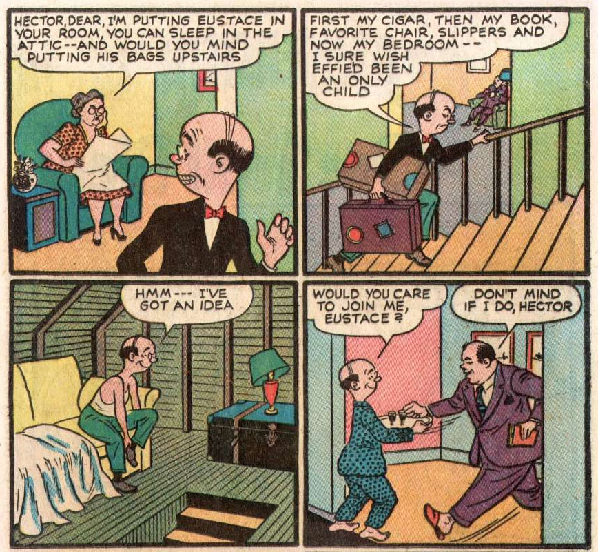 In the late 1930s, United Feature also included Maver's cartoons in its comic book title Tip Top Comics. In 1947, the cartoonist also had a short-lived direct excursion into comic books, when he drew stories with characters like Hector Droopy and Flatfoot Floogle in the 'Frankenstein' comic book by Prize Comics. At some point in his career, he is believed to have assisted Ernie Bushmiller on the newspaper comic strip 'Nancy'.
