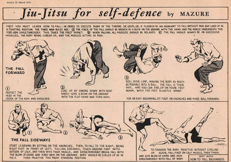 Jiu-jitsu instruction, drawn by Mazure for Eagle magazine in 1951.