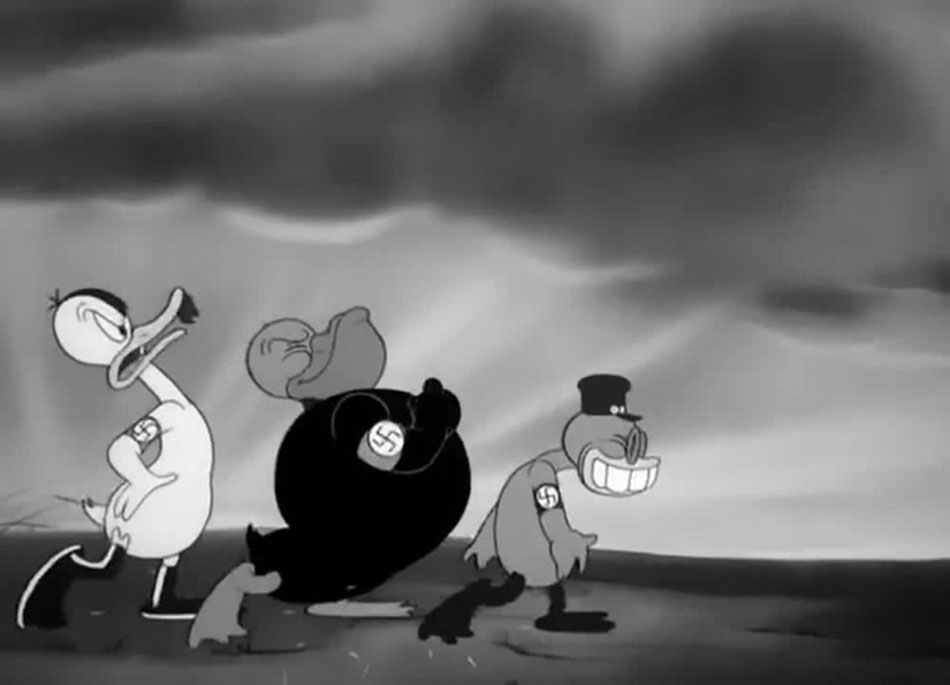 Still from: 'The Ducktators', depicting duck versions of Adolf Hitler, Benito Mussolini and Hideki Tojo.