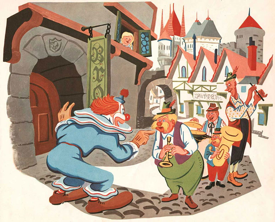 After World War II, McCabe wanted to return to Warner Brothers' studio, but there was no job available. Returning as a director was out of the question, since new producer Eddie Selzer had already restricted the directorial units to a mere three, taken by Friz Freleng, Chuck Jones and Bob McKimson. McCabe therefore went to work as a children's book illustrator for Capitol Records. At the time, 'Bozo the Clown' was very popular with children thanks to his radio shows and appearance in some of the earliest children's shows on television. Capitol Records produced a series of audio play records where Bozo was voiced by Pinto Colvig, also famous as the voice of the Disney character Goofy. McCabe not only illustrated the record covers and inner sleeves, but also children's books where young readers could follow the story along with the record. For the artwork, McCabe collaborated with Cecil Beard, a former Disney animator and scriptwriter.