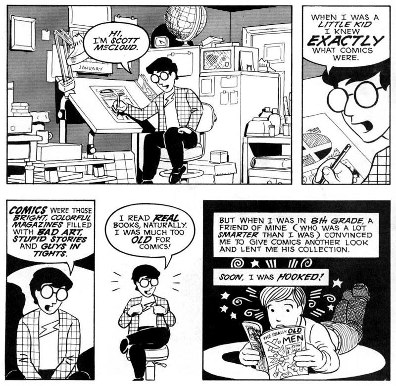 Scott McCloud is an American comic artist and theorist. Among his main graphic influences were Will Eisner, Jack Kirby, Art Spiegelman and Jim Woodring