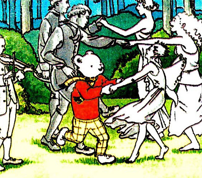 Older 'Rupert' stories have been reprinted in color in the Sunday Express since 1981. In 1991 editor Ian Robinson commissioned new, original stories for the Sunday paper as well. He hired illustrators who had not been involved with the character before. Kathleen McDougal illustrated the first original Sunday serial, 'Rupert and the Stone Fiddler' (September-December 1991), after which Marjorie Owens took over for the next twenty stories until 1995. After that point, the Sunday Express returned to reprints.