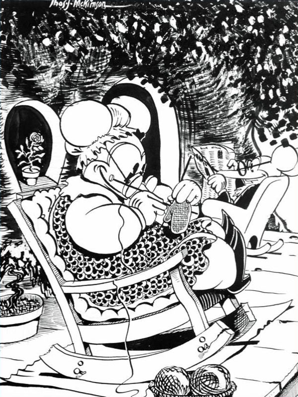 Even when he retired in 1984, Tom McKimson only gave up drawing comics. He still designed various merchandising items for Warner Brothers' animation department, including lithograph cells and clothing. The veteran passed away in 1998.
