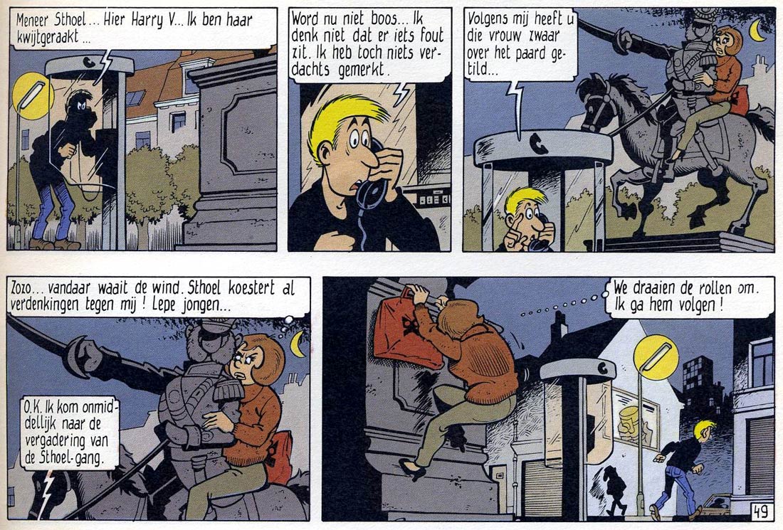 Merho learned a lot about narration, lay-out and drawing at Studio Vandersteen, both from Willy Vandersteen himself and his co-workers. Yet, wanting to create his own comic series, Merho left the studio in 1976. 'Pats' was continued by Peter Koeken and in 1977, after a legal dispute with Weyler, changed its name to 'Tits'. Under this name it ran until 1986.