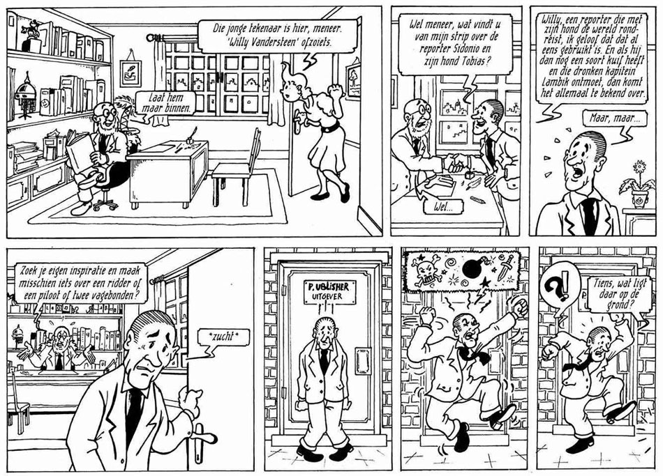 Metdepenningen was also present in P@per, the comic supplement of Brabant Strip Magazine, for which he made the gag comic 'Citytrip' (2011) and the story 'De Toerist', both in collaboration with writer Ivan Claeys. In September 2014, Metdepenningen published his comic strip 'De Dolle Avonturen van Tom Bardon: De Theepot van Shakara' on the website of Stripelmagazine. In an email to Comiclopedia, Metdepenningen explained that the 'Tom Bardon' story about a special teapot came to him after he bought an ordinary one in an IKEA store and wondered whether he could write a narrative about this object.