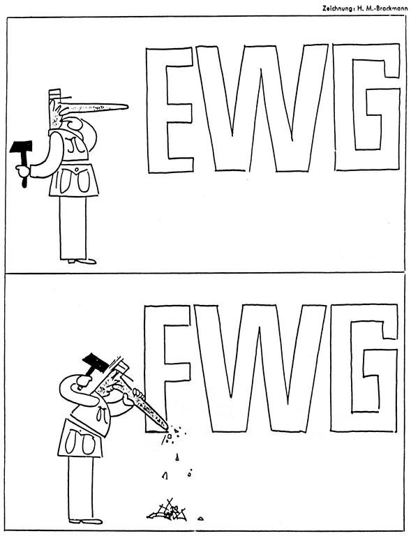 Meyer-Brockmann was regarded as one of the sharpest post-war German political cartoonists. In July 1952 he made a caricature of German novelist and playwright Carl Zuckmayer, printed next to a review of his latest publication. Zuckmayer wrote an angry letter of complaint, warning the poor man who put this drawing next to the review. He claimed that the caricature "didn't even express the slightest aspect of me and isn't even a caricature, just awful."