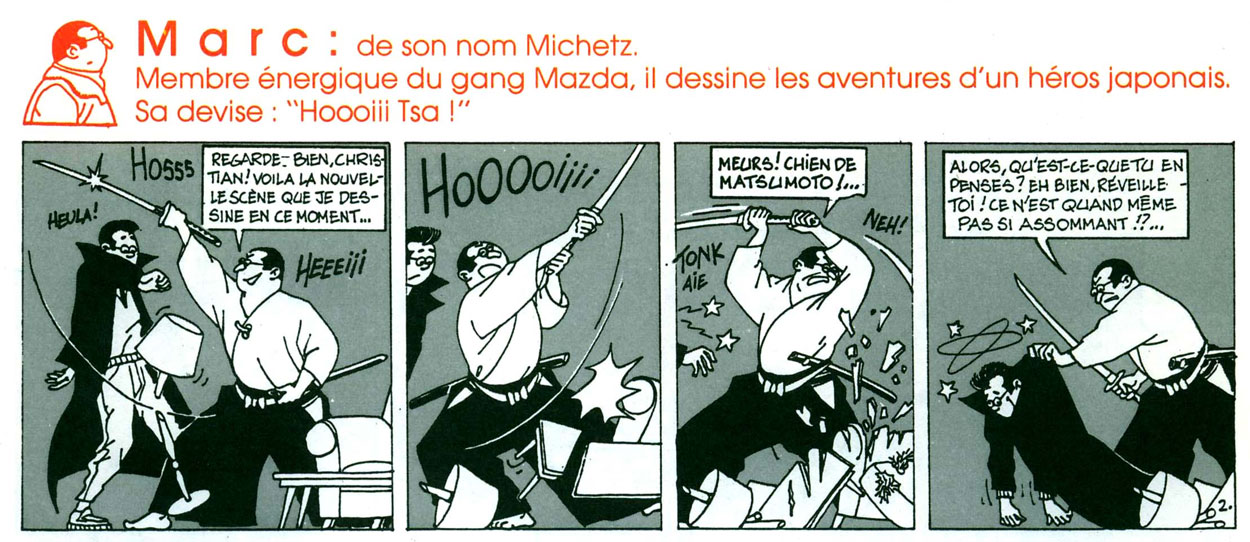 Introduction of the character Marc Michetz in the comic 'Le Gang Mazda' by Christian Darasse (1986).
