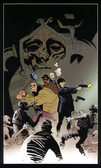 Besides his contributions to Marvel and DC, Mignola worked on the comic adaptation of Francis Ford Coppola's 'Dracula' for Topps Comics (1993), and on 'Aliens: Salvation' with Dave Gibbons for Dark Horse (1993). Halfway through the nineties, he created his own character, the supernatural detective 'Hellboy', who starred in miniseries and graphic novels published by Dark Horse, in which the artist could display the full range of his talent.