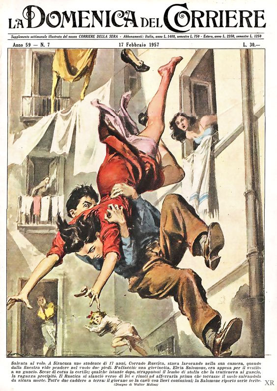 Cover illustration for La Domenica del Corriere, 17 February 1957.