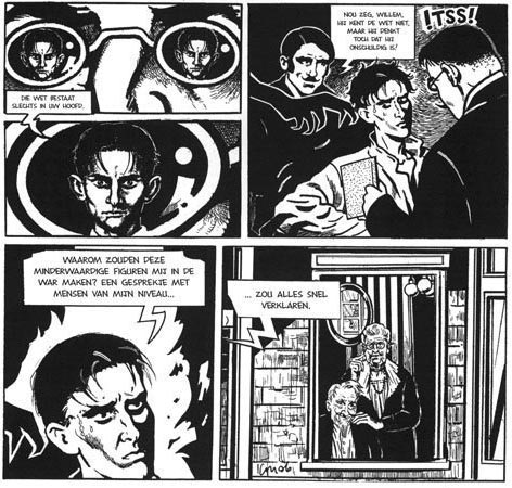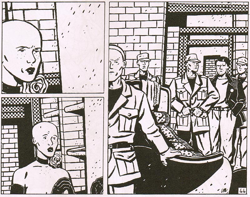 Also for Dargaud, she made 'Voyages au Bout de la Crise' and 'Paris sur Sang: Mystère au Père-Lachaise'. In the 2000s, Montellier has worked for the publishing field, done illustration work and contributed stories to Psikopat. She returned to political comics after focusing on writing and workshops for several years when Éditions Denoël released 'Les Damnés de Nanterre' in 2005. In the following year, La Boîte à Bulles published the short story collection 'Sorcières, mes soeurs', while Actes Sud released 'Tchernobyl, mon amour', twenty years after the nucleair disaster in Tchernobyl. In 2008 Montellier worked with David Mairowitz on an adaptation of the Kafka story 'Le Procès' for MetroMedia. Chantal Montellier uses an esthetic photographic style, which shows traces of an early Jacques Tardi.