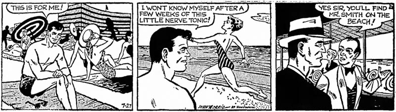 John Milton Morris was born in 1906 in Santa Barbara, California. At age 13, he earned his earliest dimes as a newspaper boy in San Bernardino, selling daily newspapers to passersby in the street. His career was abruptly discontinued when young John was accidentally hit by a truck. While he was lucky to survive, he was severely injured and had to stay in bed for almost two years. During his recuperation period, Morris spent most of his time reading. Understandably, he wanted to do something more constructive after a while and decided to take up a correspondence course in drawing. By the time he had fully recovered, Morris knew what he wanted to do for the rest of his life: become a cartoonist.