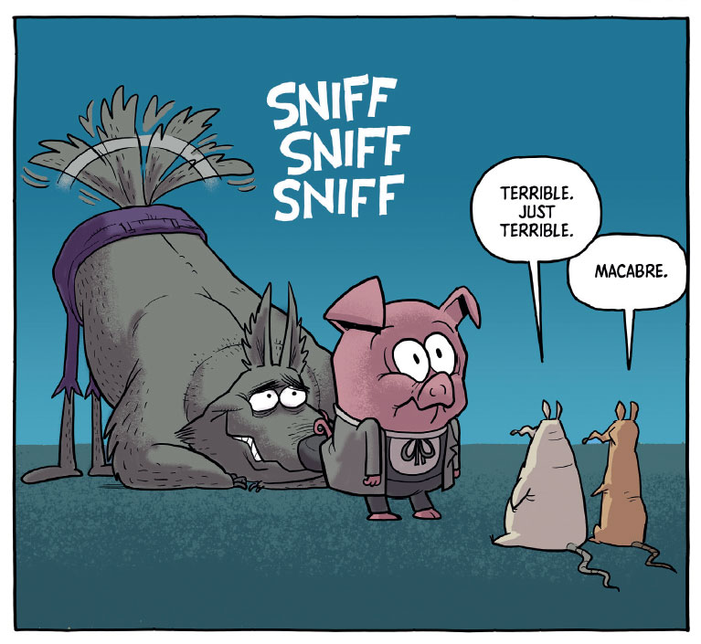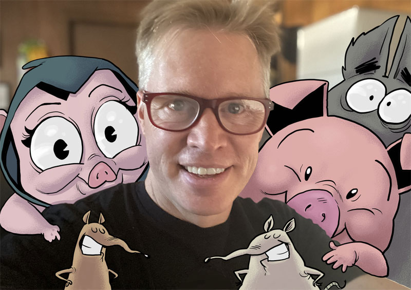 Moyer's more prominent return to print media was inspired by his two daughters, who showed him "how graphic novels can land as sweet as much as they are silly". The result of his new insight was the 'Ham Helsing' graphic novel series, a mix between cartoon fun and a relatable story of self-discovery. An anthropomorphic pig, Ham Helsing is a descendant of a long line of adventurers and monster hunters who has always been the odd pig out. During his hunts for monsters and vampires, he learns the facts of life and discovers that people aren’t always what they seem. Since 2021, Penguin Random House has released the stories in a series of books, including 'Vampire Hunter' (2021), 'Monster Hunter' (2022) and 'Raising the Stakes' (2023).