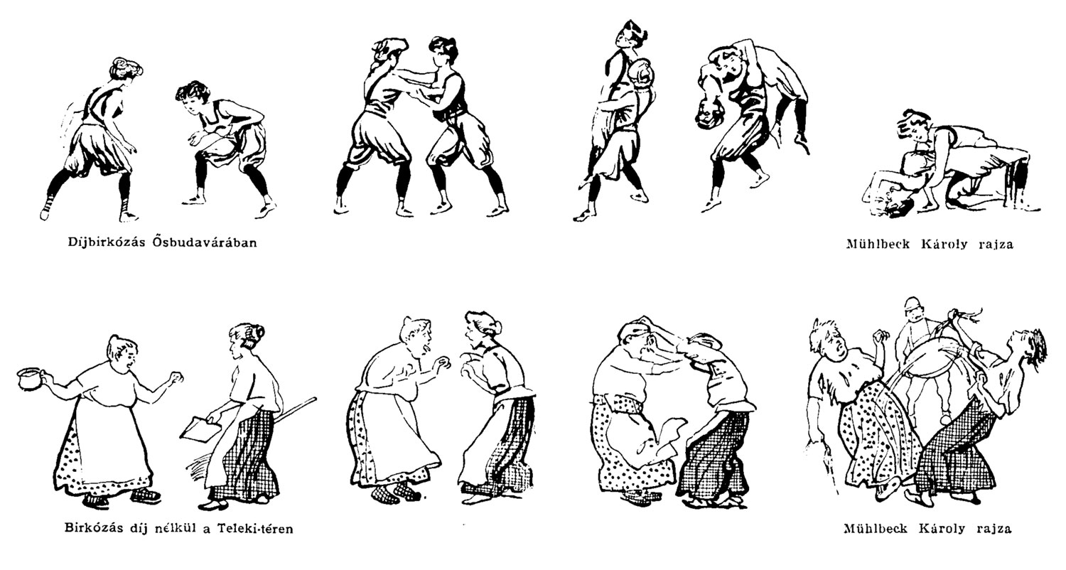 Among Mühlbeck's earliest assignments were book illustrations for the publisher Singer and Wolfner in the early 1890s. In 1892, his first cartoons and comic strips appeared in Kakas Márton, the bi-weekly supplement of the Hungarian newspaper Budapesti Hírlap. His contributions commented on the news events of the day from the newspaper's conservative viewpoint. Afterwards he began his long association with Borsszem Jankó, one of Budapest's prime political magazines, aimed at the conservative urban bourgeoisie. Mühlbeck contributed cartoons and sequential pieces between 1906 and 1925.