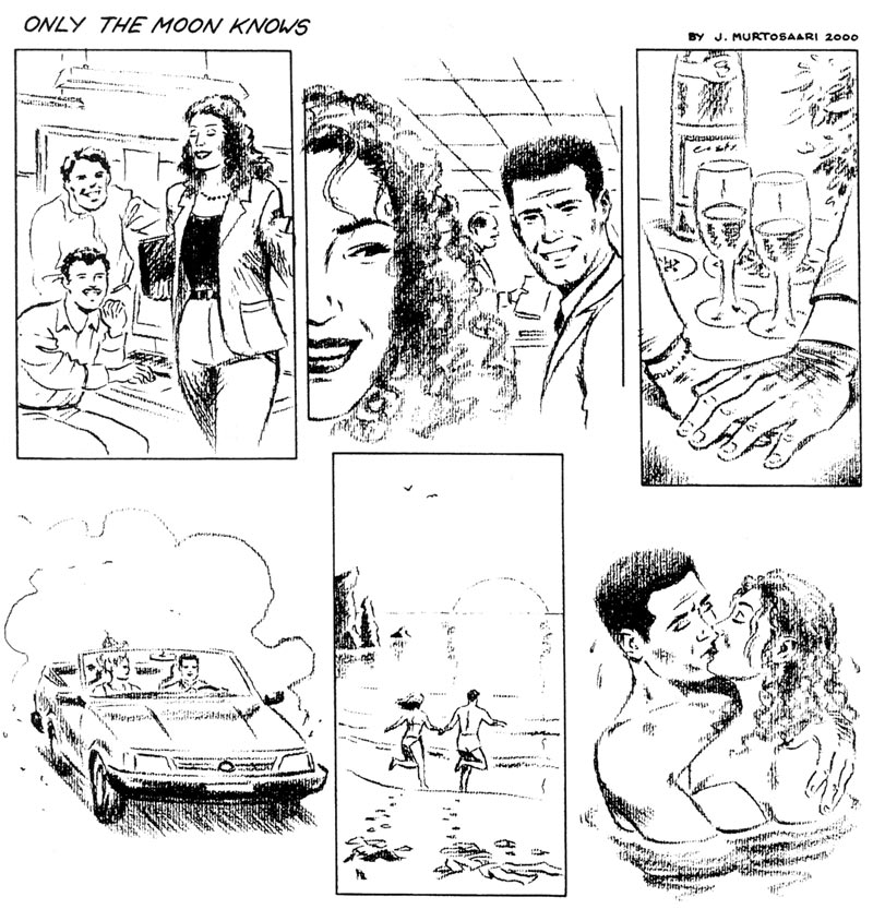 Murtosaari eventually returned to Finland, where he drew for the 'Moomin' books for a while. He also made a lot of illustrations for sci-fi, fantasy and children's books, and collaborated with Kari Korhonen on the Disney-esque book 'Vauhtikaverit ja taistelu auringosta' by Jaano Lappo. In the 2000s, he contributed to the sci-fi magazines Pulp and Portti. Murtosaari has drawn for Swedish companies like Bonnier, Carlsen and Semic, and for Sanoma in the Netherlands. He spent his final years in Portugal, where he passed away in 2016 at the age of 53.
