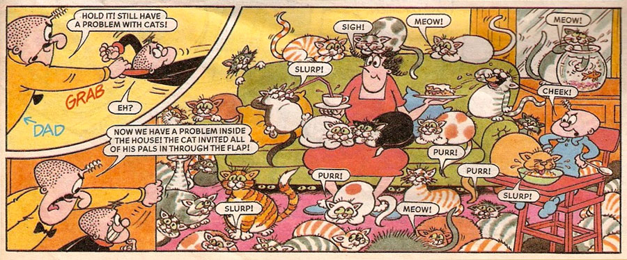 In the 1980s, Neill was also present in the magazines published by I.P.C. He drew 'Top of the Class' and 'Melvyn's Mirror' for Buster and 'Spare-Part Kit' in Whoopee. He returned to The Beano in the late 1980s, taking over 'The Germs' from David Sutherland, and drawing 'Billy Whizz' from 1992. Neill remained with The Beano until his death in 1999, drawing 'Tim Traveller' and 'Crazy for Daisy'.