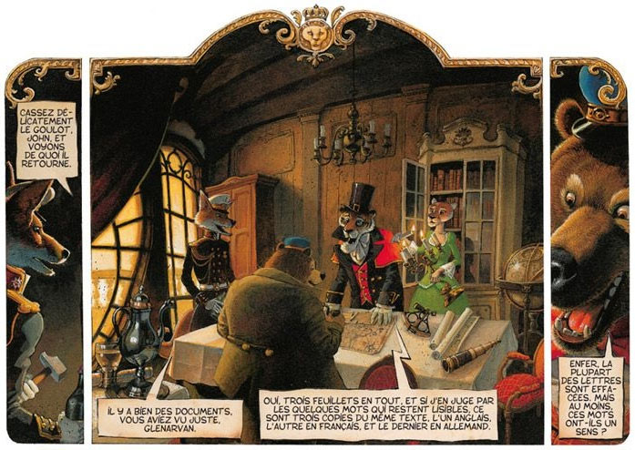 Nesme became an allround author with his next series, 'Grabouillon', for which he used a 3D technique. Two books were published by Delcourt in 2003. Nesme's also contributed his fairy tale artwork to Delcourt's series of La Fontaine adaptations. He turned to Jules Verne for his next project, a comic adaptation with anthropomorphic animals of 'Les Enfants du Capitaine Grant' ('In Search of the Castaways'), of which the first book appeared in 2009.
